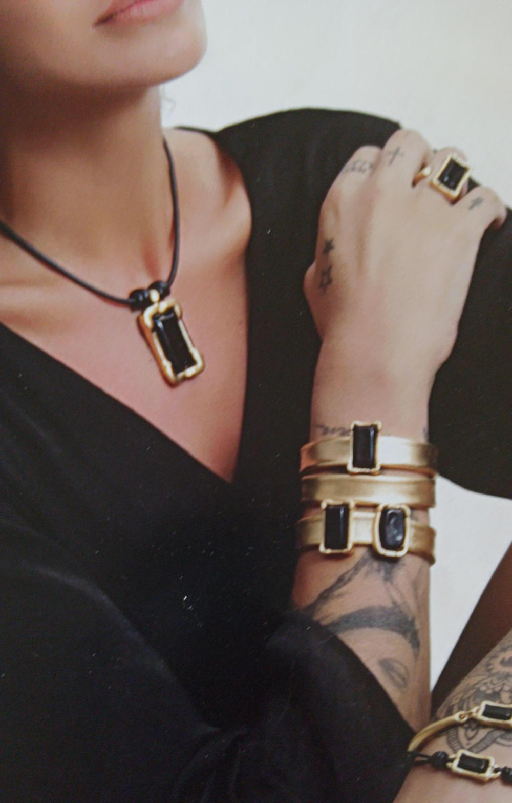 Tra-La-Ra Bangle with stone - Gold color two black stones is backordered and will ship as soon as it is back in stock.