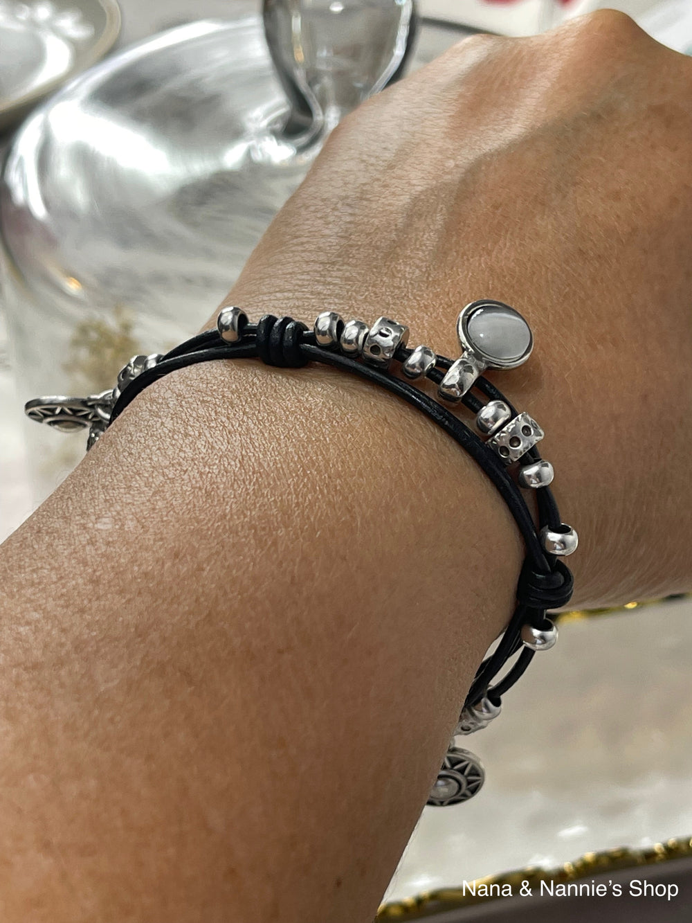 Stylish and versatile, this beautiful bracelet is crafted from genuine leather and high-quality zamak. Measuring 7" and adjustable up to 7 1/2", it combines comfort, durability, and elegance perfect for everyday wear.