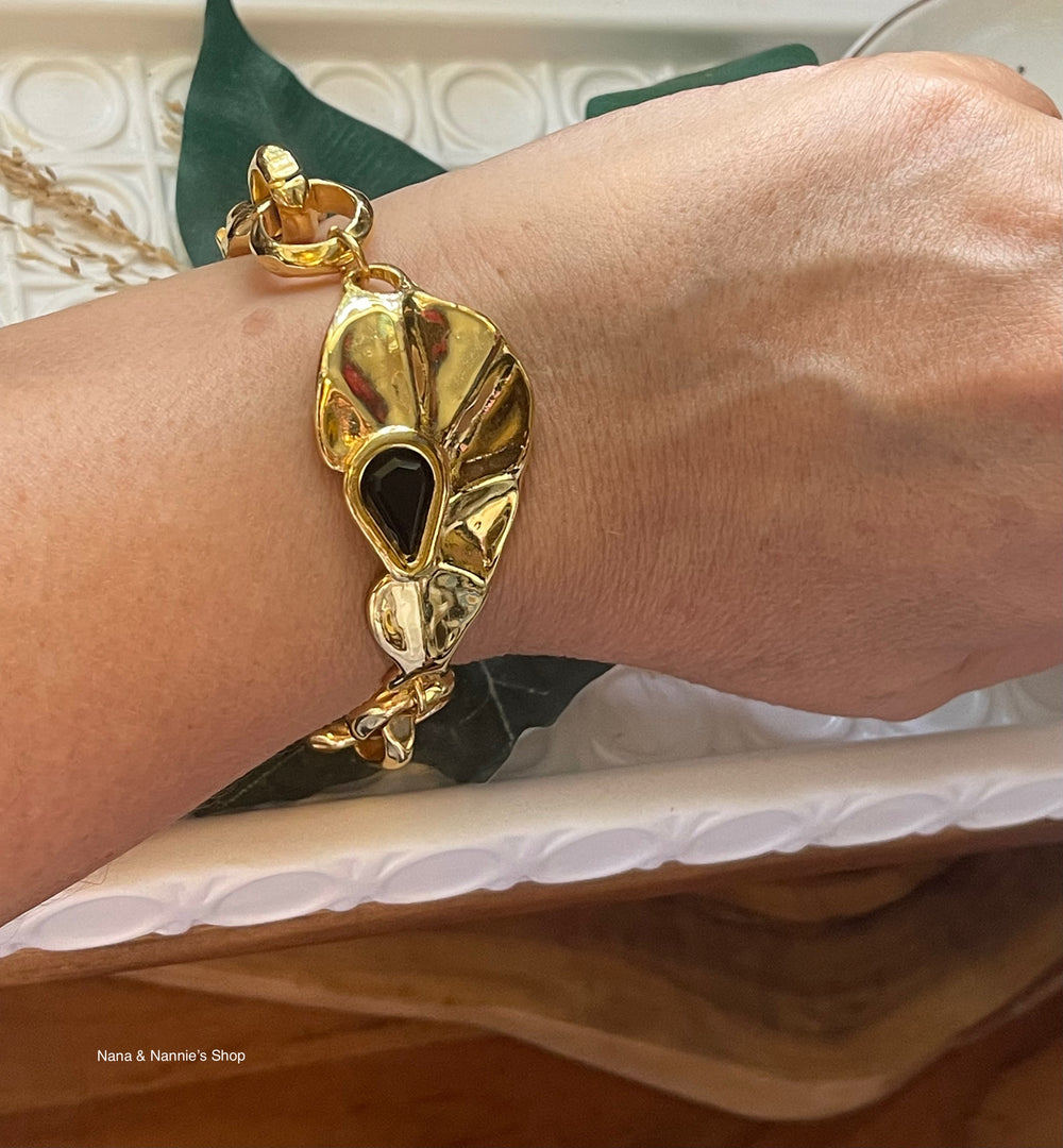 Timeless and sophisticated, this beautiful bracelet is crafted from high-quality gold-plated zamak. Measuring 7 3/4" and adjustable up to 8 3/4", it offers both comfort and elegance a perfect accessory to complement any outfit.