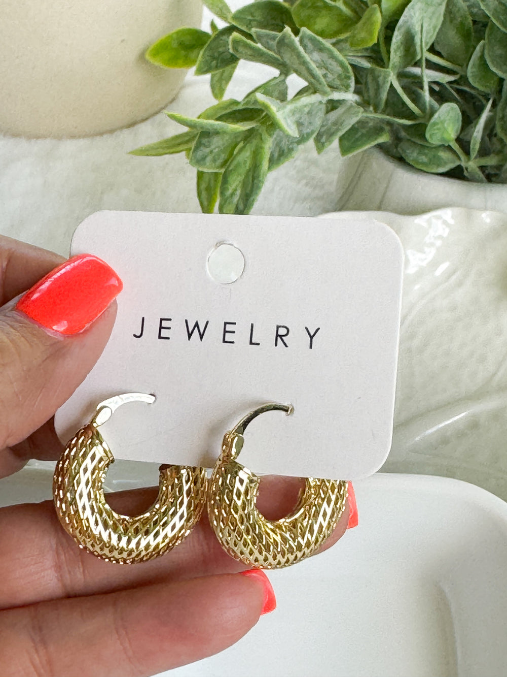 Style is all about the details that set you apart. These hoop-style earrings, with their unique sea-mesh texture, strike the perfect balance between modern design and timeless sophistication. Subtle yet eye-catching, they’re crafted to bring an elevated touch to your everyday looks.