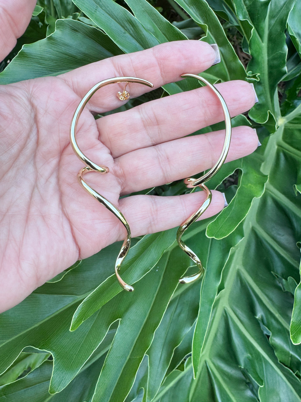 There’s something captivating about movement, the way a simple twist can turn into something unforgettable. These long, fluid earrings were designed to embody that feeling: graceful, bold, and endlessly elegant. They bring a sculptural touch that draws the eye and elevates your look with effortless charm.