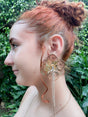 When you want your accessories to feel as bold and beautiful as you do, these earrings say it all. With a floral silhouette that opens delicately around the face, these 2.5" maxi earrings combine elegance and movement in perfect balance. Crafted in stainless steel with a radiant rhodium finish, each petal allows glimpses of light and skin, while two slender strands shimmer below, catching the light with every step thanks to their diamond-like details.