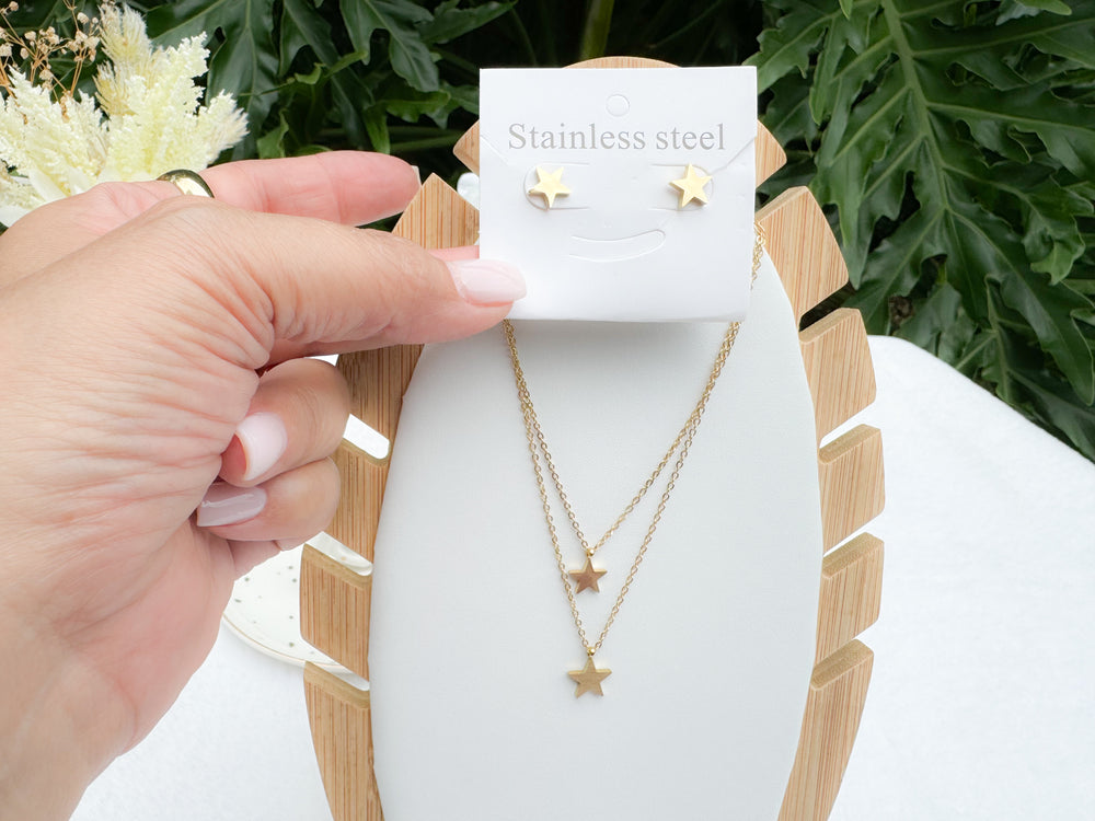 Graceful and radiant, this set embodies understated glamour. Its star design and layered necklace bring just the right amount of shine a symbol of light and confidence that never fades.