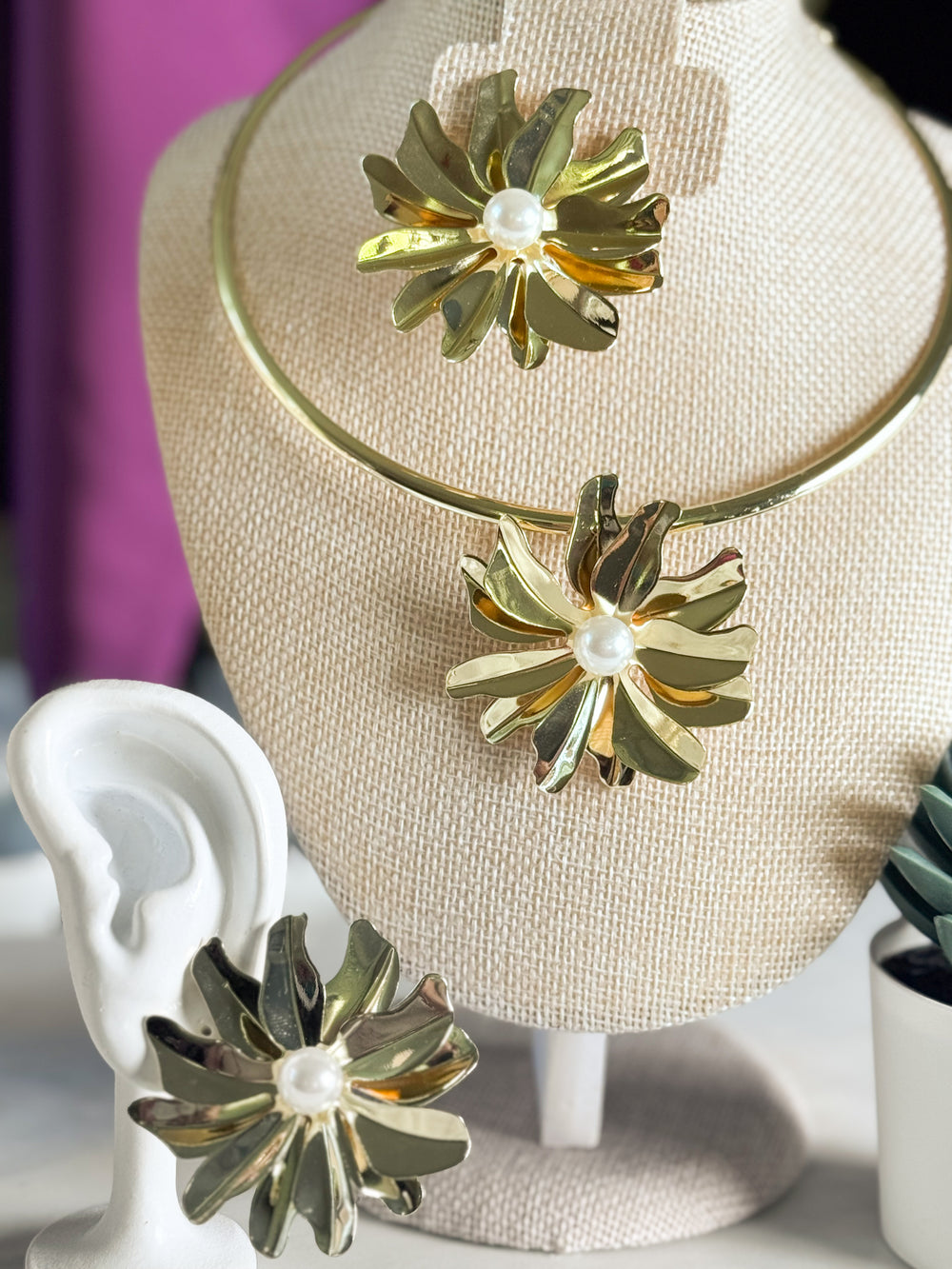 Some pieces feel like sunshine you can wear — this golden daisy set captures that joy with timeless grace. The delicate double-petal design and luminous pearl centers bring a touch of nature’s beauty to your look, offering both sophistication and warmth in every detail.
