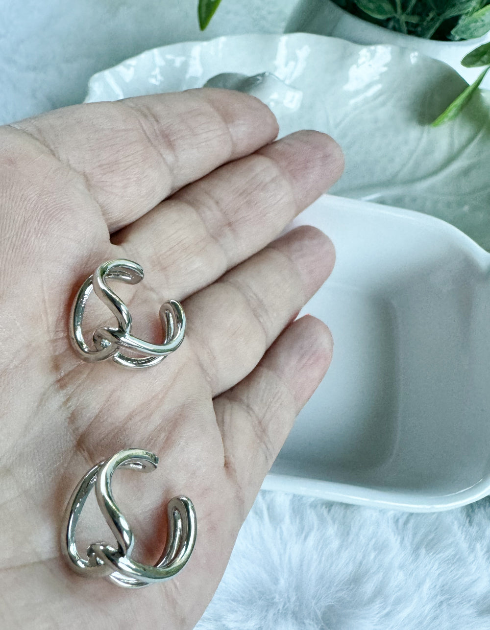 Minimalism with a twist, this silver earcuff brings effortless edge and elegance to your everyday style. Crafted in stainless steel and plated in rhodium, it’s the perfect piece to elevate your look with subtle sophistication.