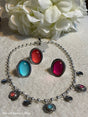 Colorful and elegant, this beautiful 18" necklace is crafted from high-quality zamak and adorned with stones in varying hues. Its vibrant design adds a touch of personality and sophistication, making it the perfect statement piece for any occasion.