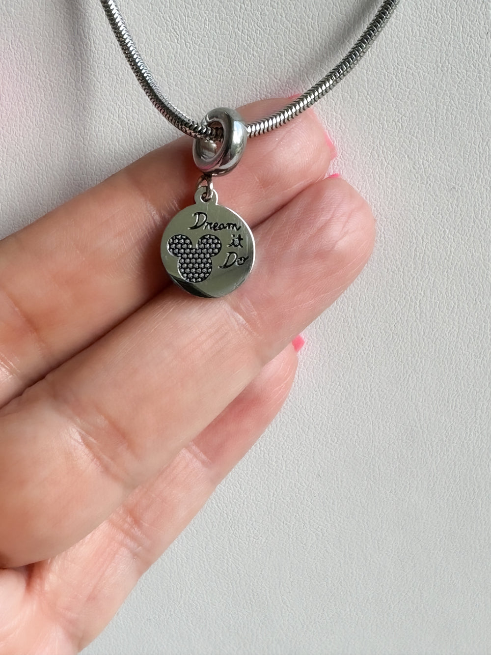 Playful style with a modern twist. This stainless steel necklace features adorable cartoon-inspired charms that add personality and fun to your look. Designed in a sleek silver tone, it’s perfect for everyday wear with just the right touch of charm.