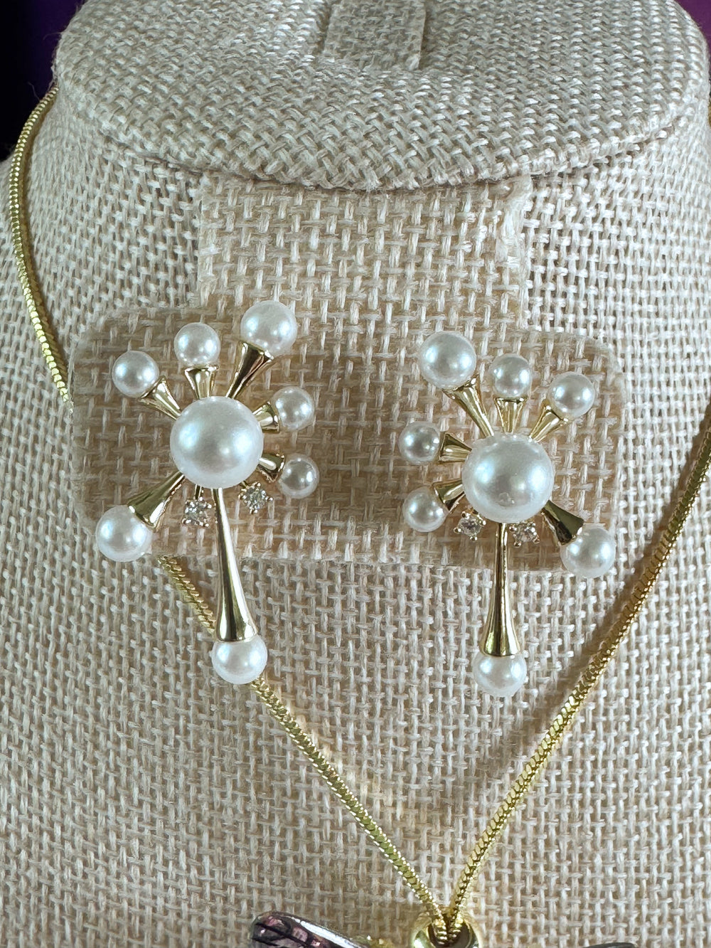 Some accessories don’t just frame your face—they light it up. These gold-tone earrings are a delicate balance of classic pearls and shimmering details, created for the woman who loves timeless beauty with a modern edge. Their sculpted design draws the eye effortlessly, adding a touch of luminous sophistication to any look.
