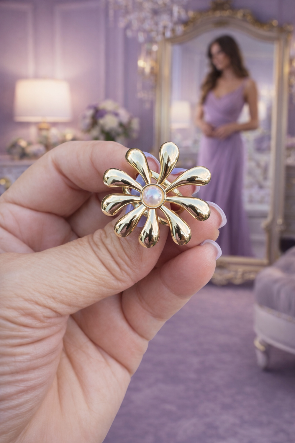 More than just a ring, this piece is an expression of elegance and natural beauty. Its floral design and luminous center make it perfect for elevating everyday looks or adding a graceful touch to special occasions. A timeless piece that feels feminine, refined, and effortlessly beautiful—just like you.