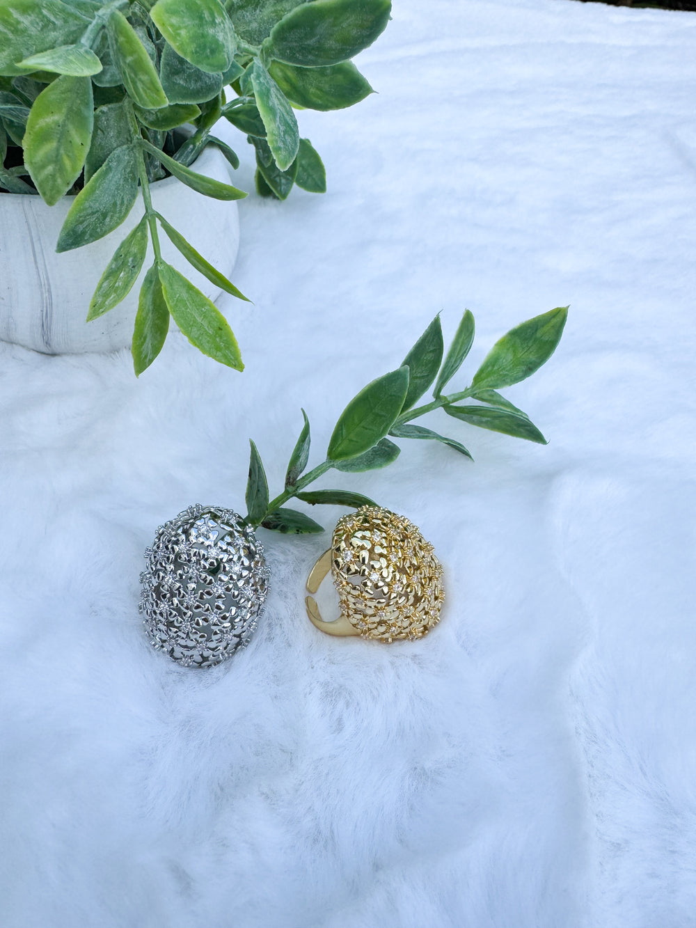 Intricate beauty that feels like poetry in metal. This ring is a celebration of craftsmanship and delicate strength, where every tiny detail whispers elegance, and the open design lets your natural glow shine through. Bold yet graceful, it’s a piece that speaks without trying too hard.