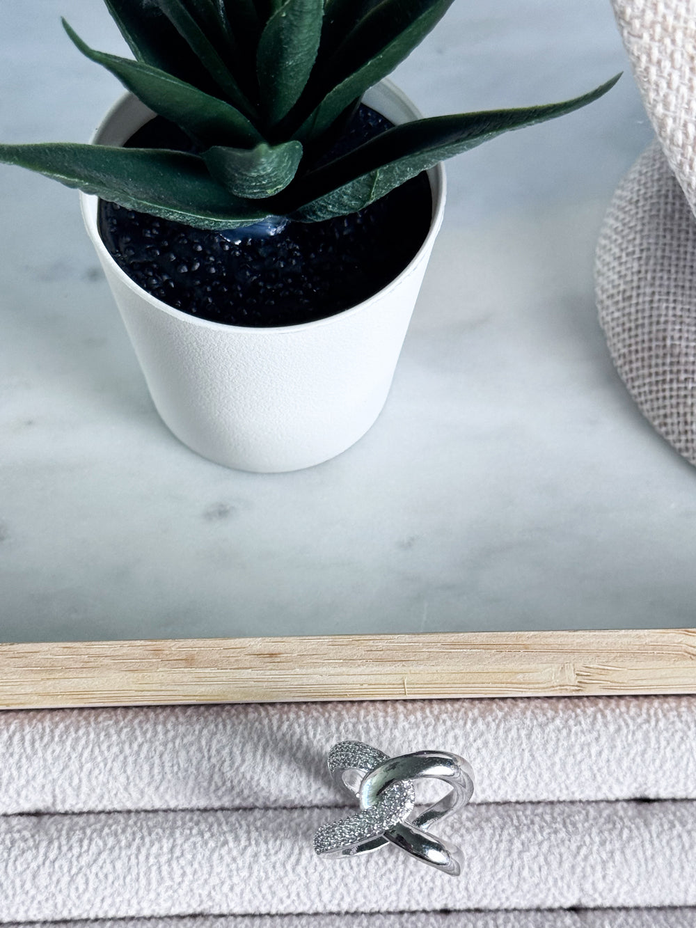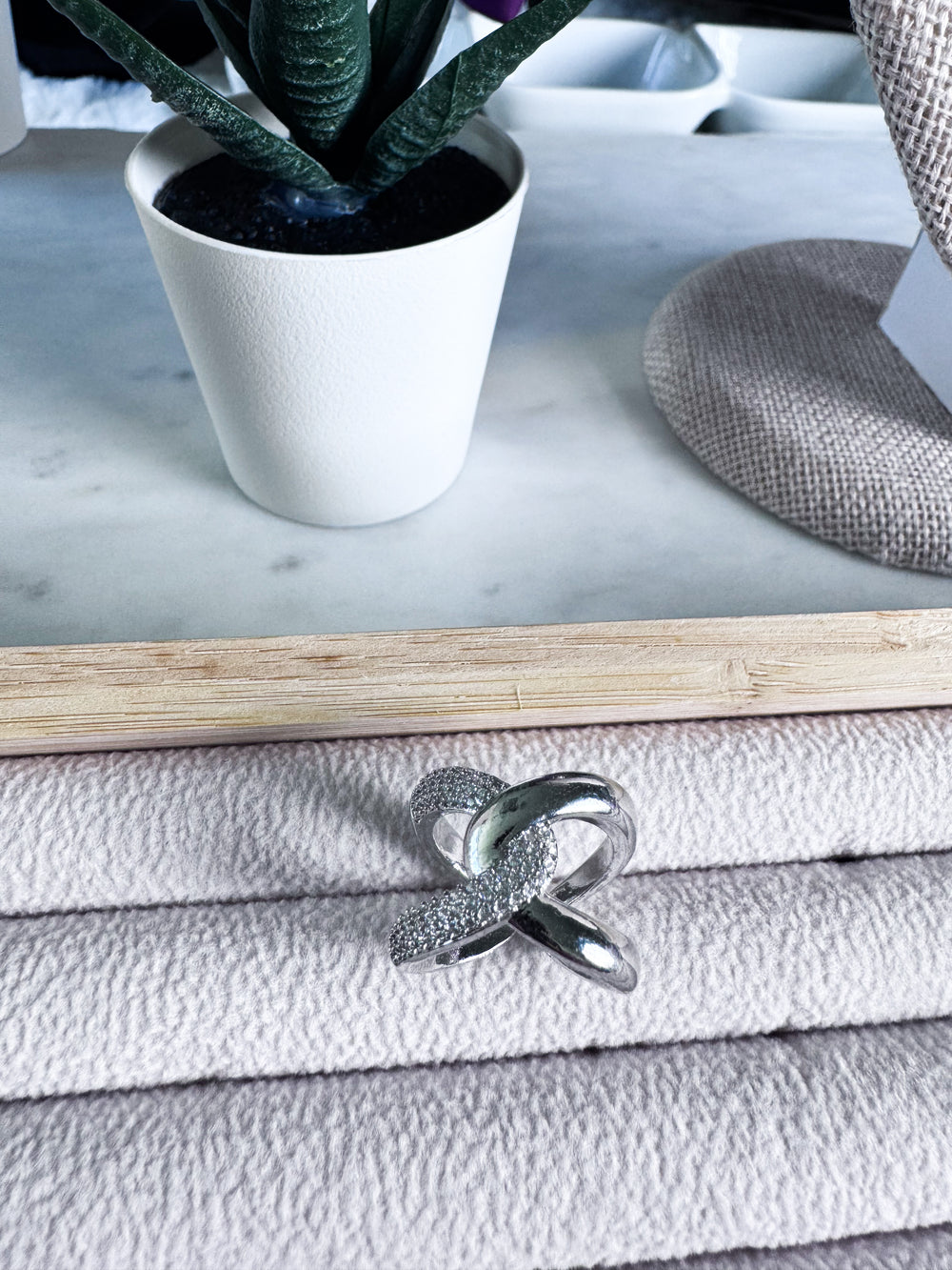 Delicate yet eye-catching, this ring is perfect for adding a touch of sophistication to your everyday style. Its open, intertwined design makes it a timeless piece that complements any look while offering comfort and graceful shine.