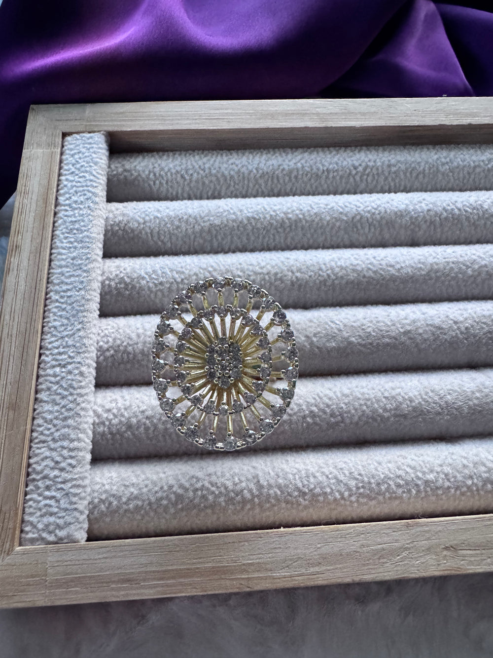 This ring is a celebration of refined design and subtle drama. Its open, airy structure and shimmering accents make it the perfect accessory for those who love statement pieces that remain effortlessly chic. Add it to your collection and let your style shine from every angle.