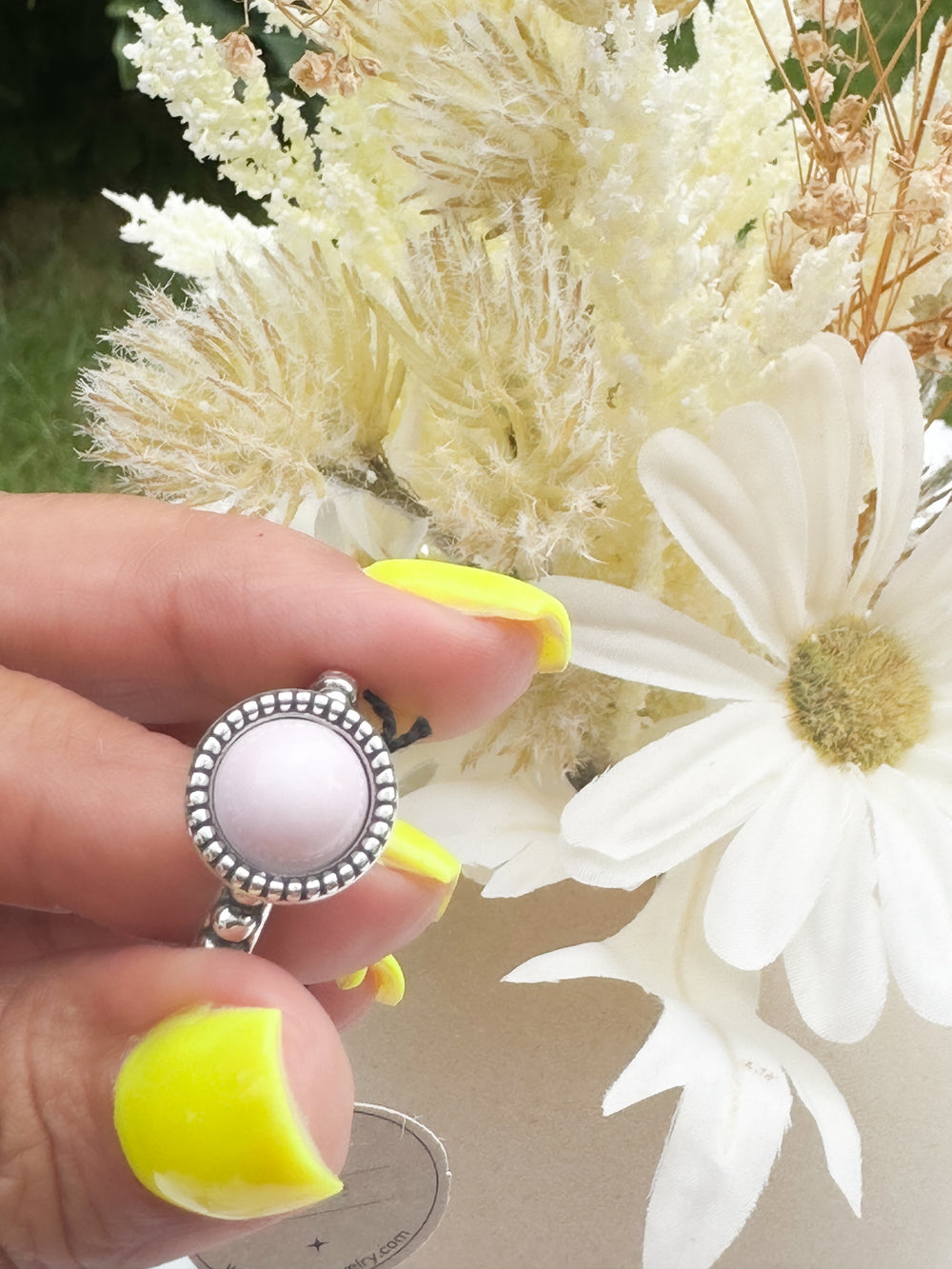 Graceful and luminous, this ring is made for those who love subtle beauty with a hint of color. Its delicate tones and adjustable design make it a must-have piece, elegant enough for special occasions, yet simple enough for everyday wear.